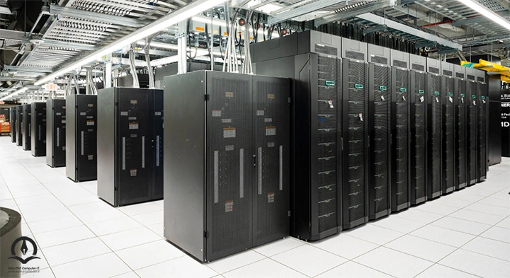 از دستههای مهم دیگر کامپیوترها میشه به سوپرکامپیوترها یا ابرکامپیوترها اشاره کرد. سوپرکامپیوترها برخلاف کامپیوترهای شخصی توانایی این را دارند که محاسبات بسیار زیاد و پیچیده رو انجام بدن. فرض کنید هزاران و میلیونها کامپیوتر شخصی رو به هم وصل کنید و بهصورت موازی از قدرت شون استفاده کنید؛ بنابراین در تعریف سوپرکامپیوترها به زبان ساده میتوان گفت که شبیه به کامپیوترهای معمولی عمل میکنند؛ اما بسیار بسیار قدرتمندتر هستند. از سوپرکامپیوترها برای کارهایی استفاده میشه که محاسبات دقیق و بالایی لازم دارند. مثلاً پیشبینی وضعیت هوا، شبیهسازی حرکت مولکولها و خیلی از موارد دیگر؛ در تصویر زیر یک سوپرکامپیوتر رو مشاهده میکنید: