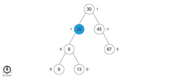 - اگر ضریب تعادل فرزند راست =< 0 باشد، چرخش به چپ را انجام دهید.
