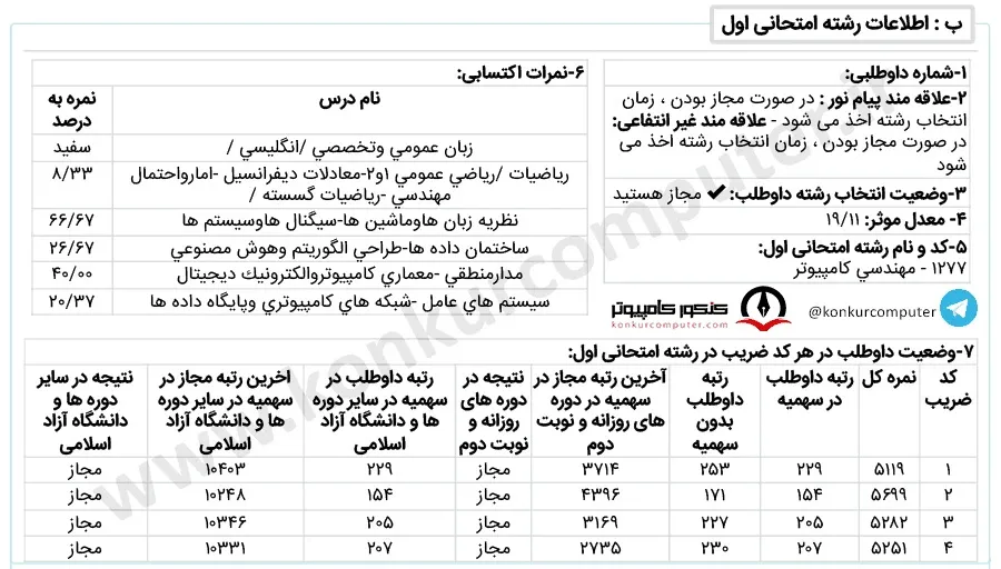کارنامه قبولی شبکه های کامپیوتری روزانه دانشگاه علم و صنعت