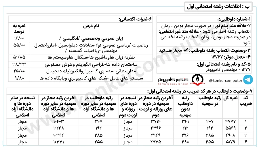 چگونه می توانم به کارنامههای پذیرفته شدگان مقطع ارشد مهندسی کامپیوتر دسترسی داشته باشم؟