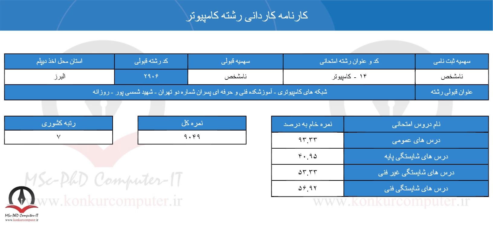 کارنامه قبولی کاردانی کامپیوتر 1400-9