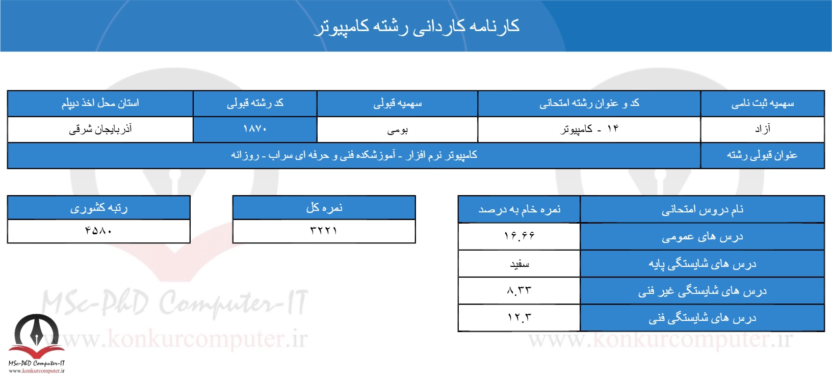 کارنامه کاردانی کامپیوتر 1403