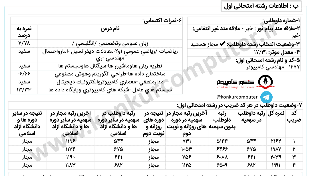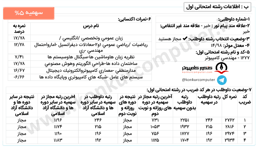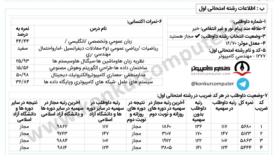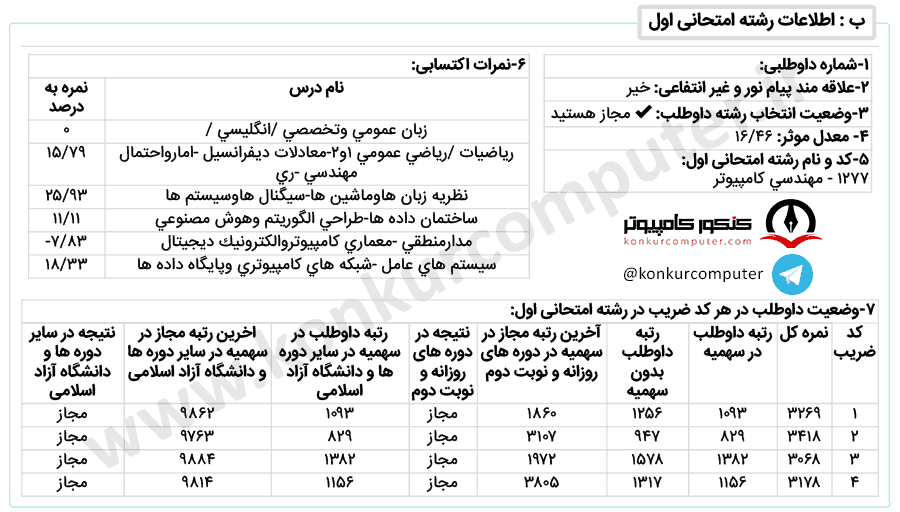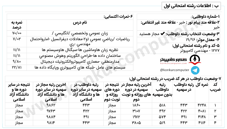 نظر رتبه 13 کنکور ارشد کامپیوتر 1401