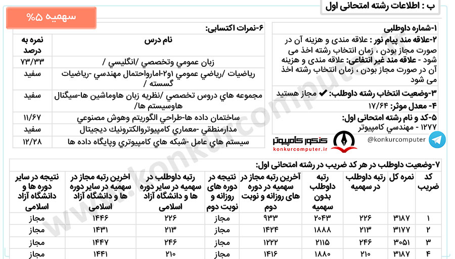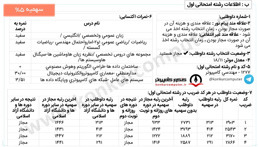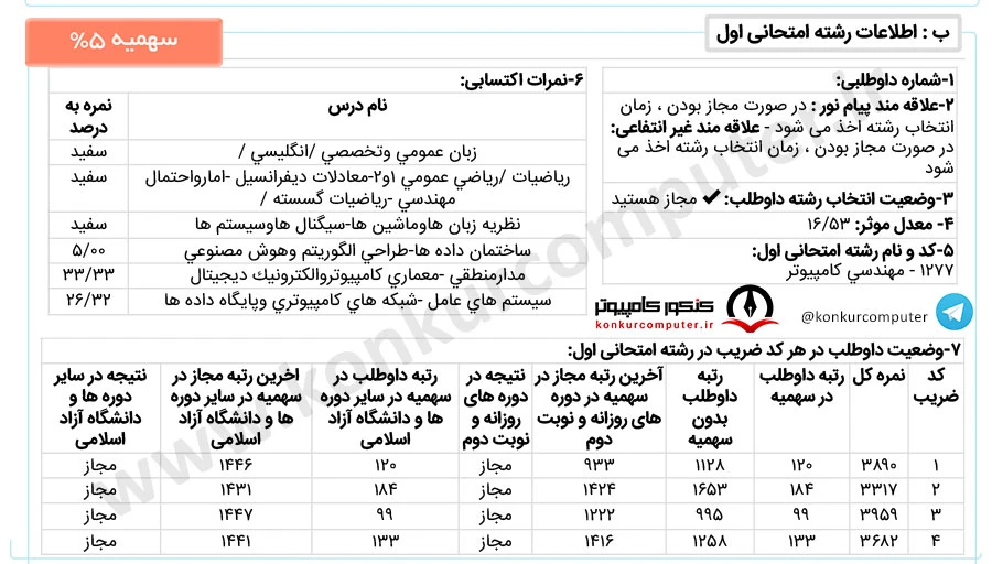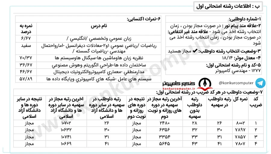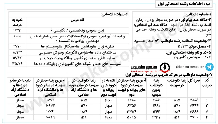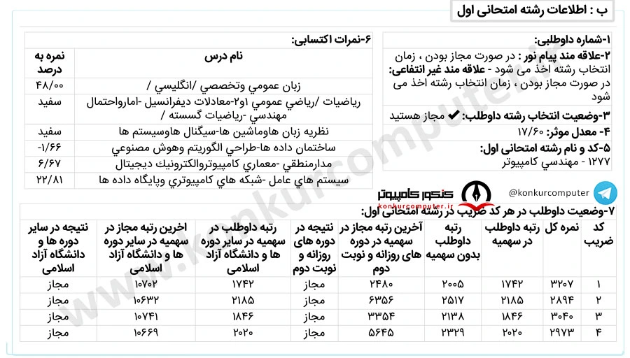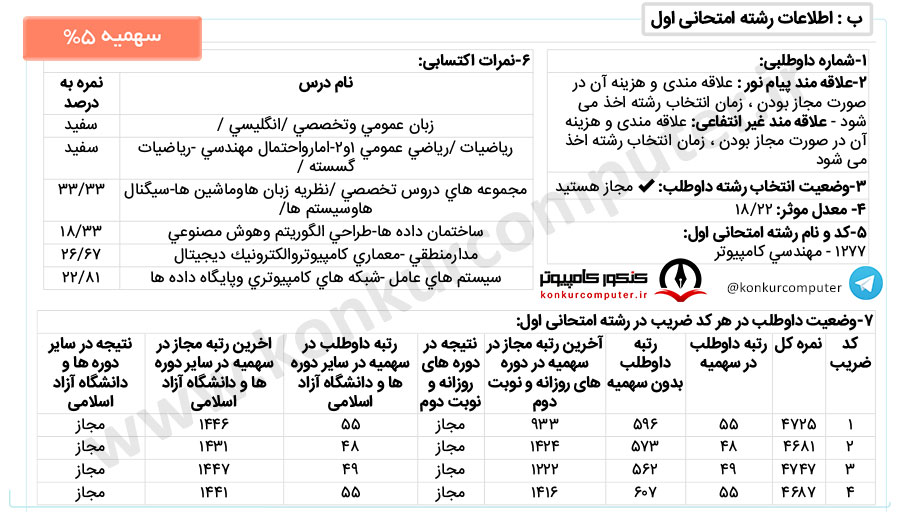 نظر رتبه 13 کنکور ارشد کامپیوتر 1401