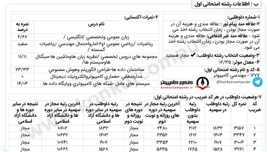 نظر رتبه 1 کنکور ارشد کامپیوتر 1403