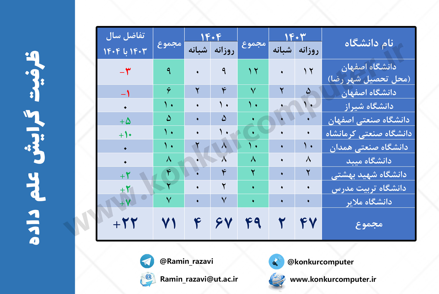 ظرفیت گرایش علم داده کنکور ارشد کامپیوتر