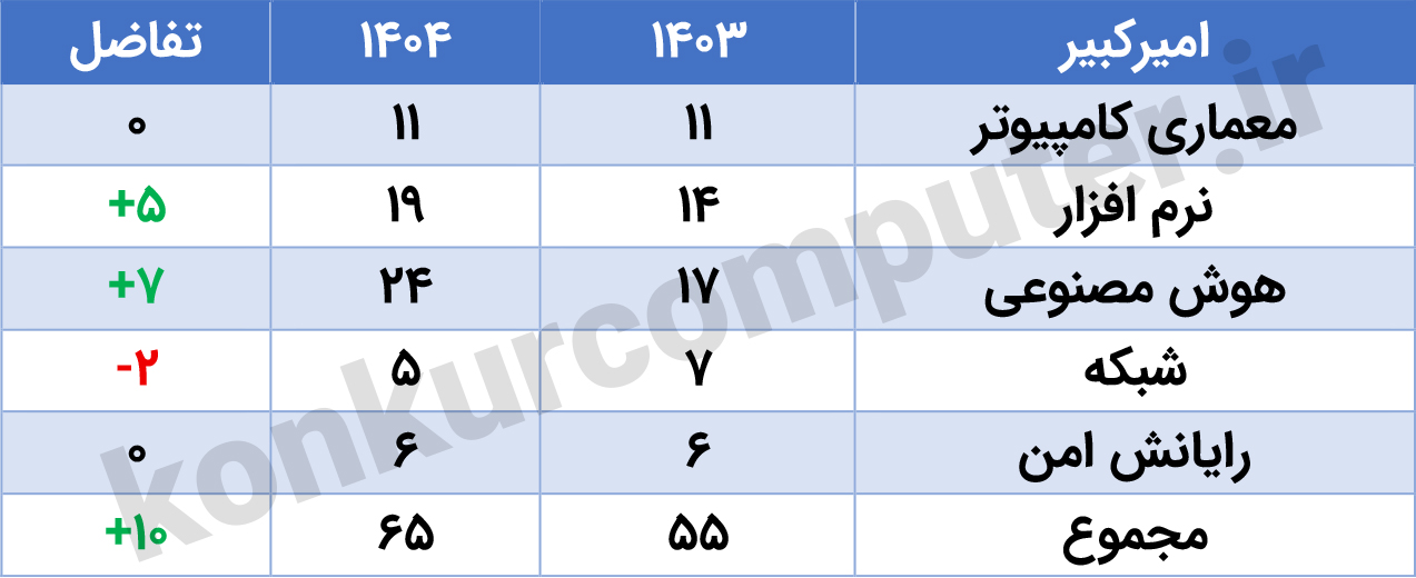 ظرفیت ارشد مهندسی کامپیوتر دانشگاه امیرکبیر