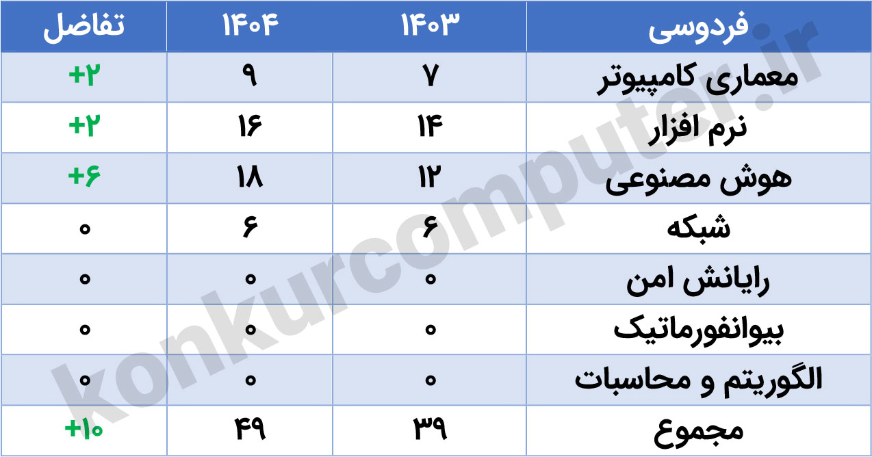 ظرفیت ارشد مهندسی کامپیوتر دانشگاه فردوسی