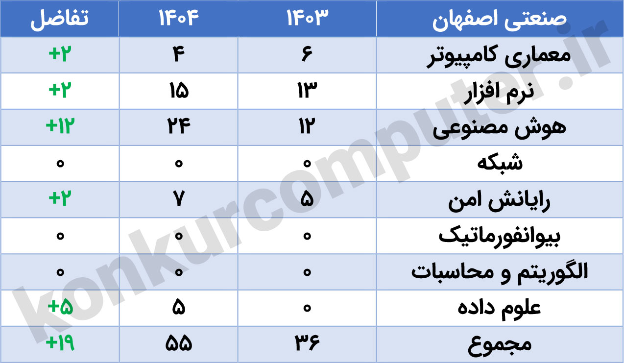 ظرفیت ارشد مهندسی کامپیوتر دانشگاه صنعتی اصفهان