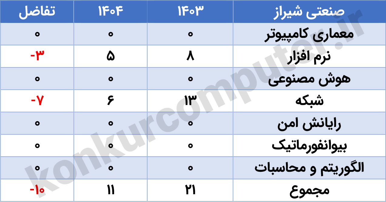 ظرفیت ارشد مهندسی کامپیوتر دانشگاه صنعتی شیراز