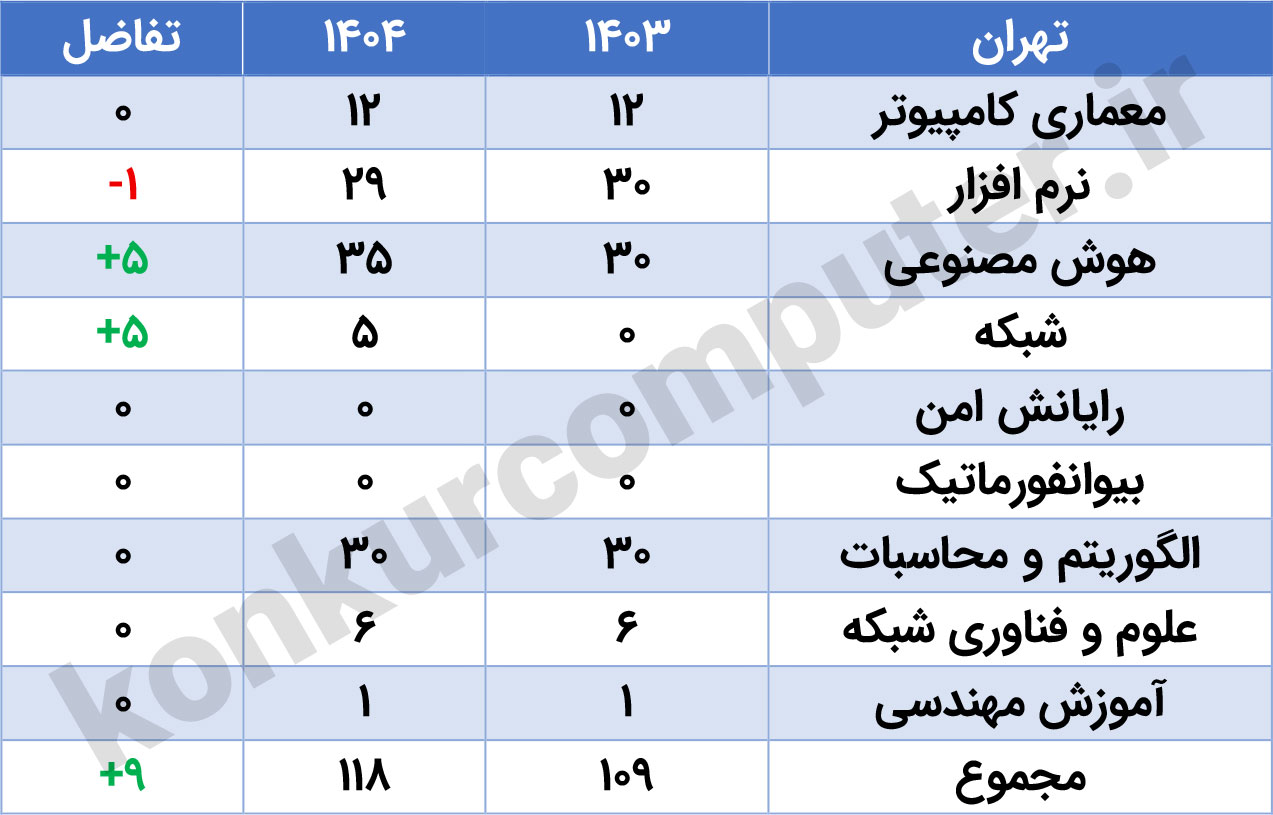 ظرفیت ارشد مهندسی کامپیوتر دانشگاه تهران