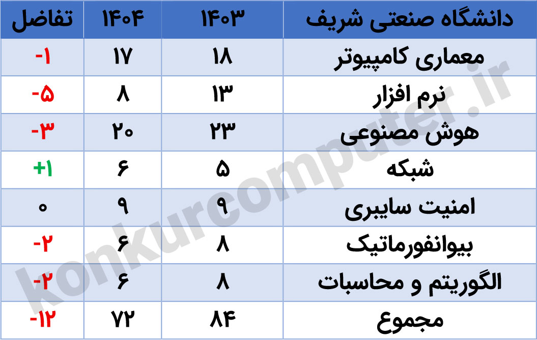 ظرفیت ارشد مهندسی کامپیوتر دانشگاه صنعتی شریف